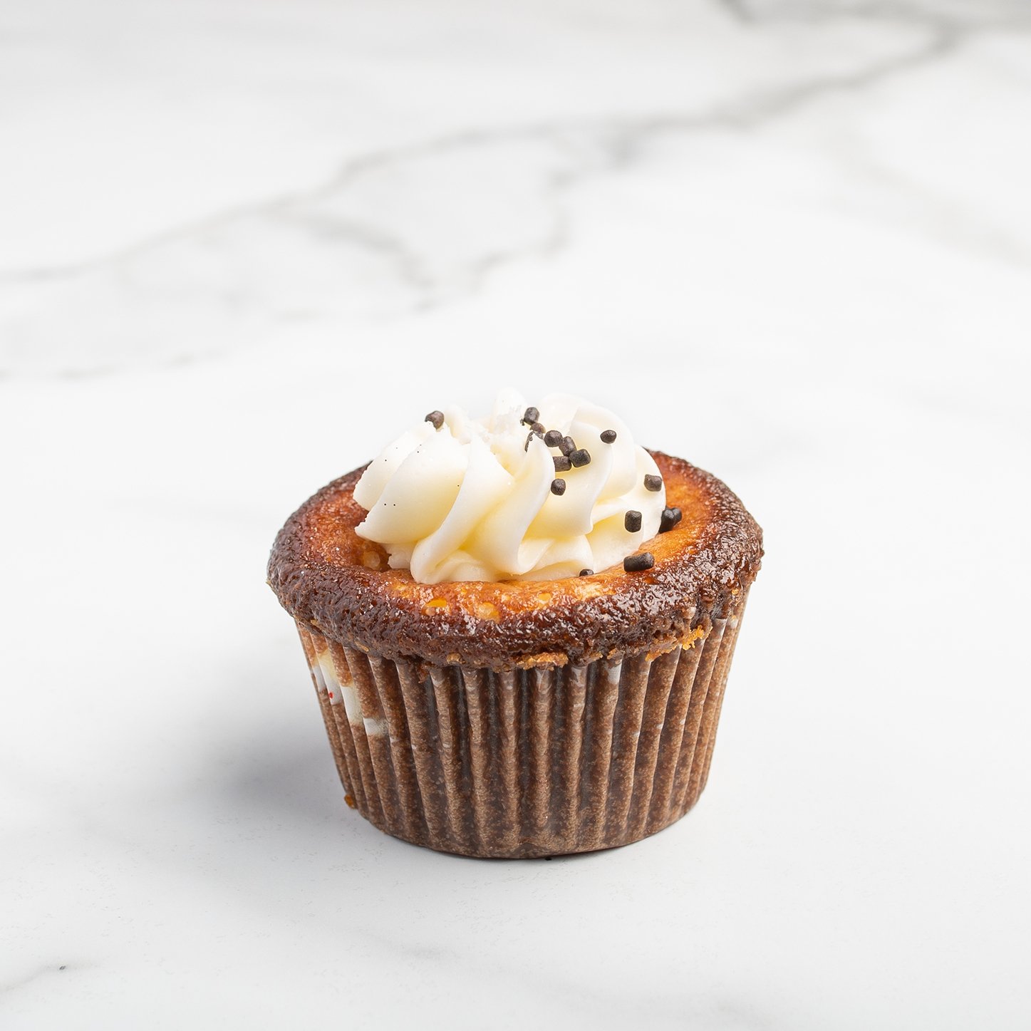 Our signature chocolate cupcake with cheesecake baked smack dab into the center and topped with just a dollop of our rich cream cheese frosting. Showoff.
