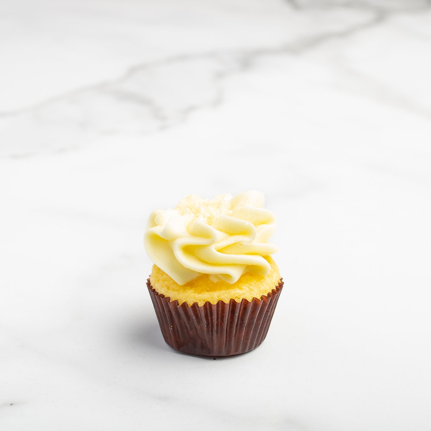 A moist and light lemon cake infused with house-made lemon curd, topped with lemon buttercream and edible glitter. Zing! Pow! Yum!
