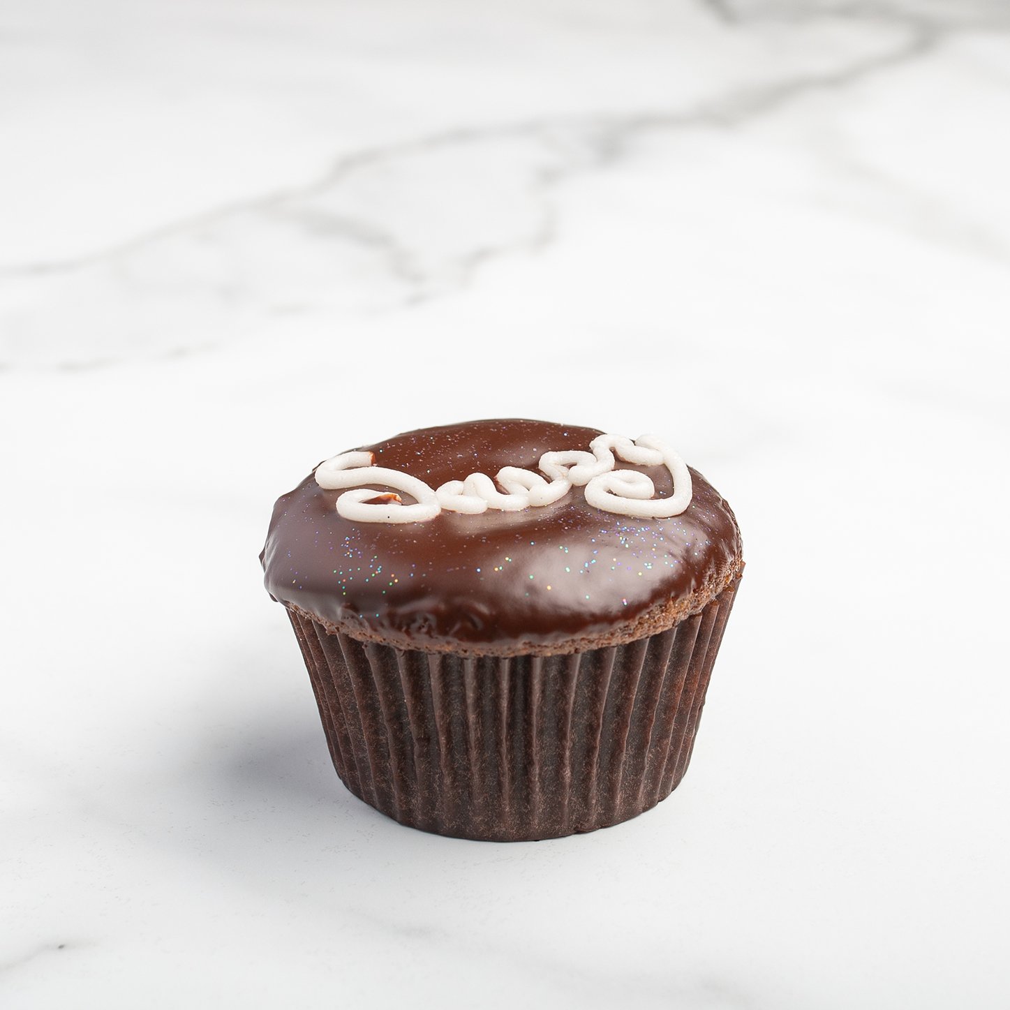 Our signature chocolate cupcake is infused with a rich and creamy filling, dipped in ganache and piped with fun vintage swirls.