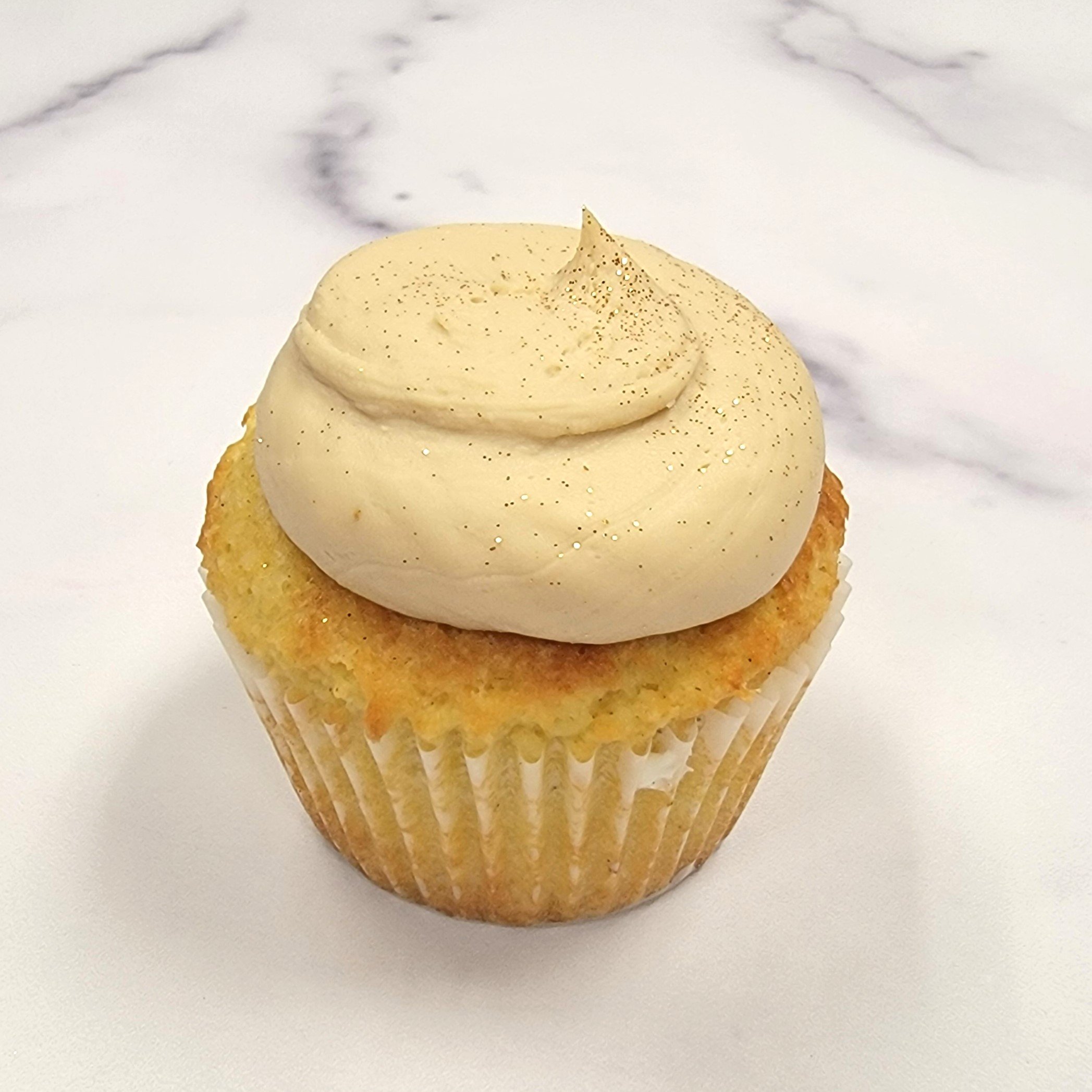 Our lighter vanilla cupcake is topped with a whipped, low sugar mocha buttercream, then kissed with glitter and magic.
