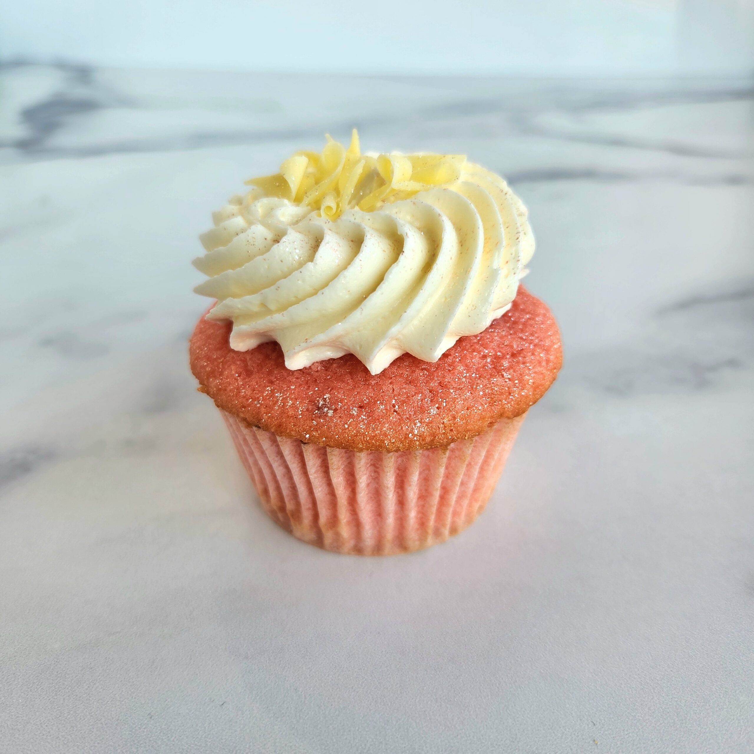 Our light raspberry cake is filled with raspberry preserves, topped with white chocolate buttercream, and garnished with white chocolate curls. It is elegant and decadent!