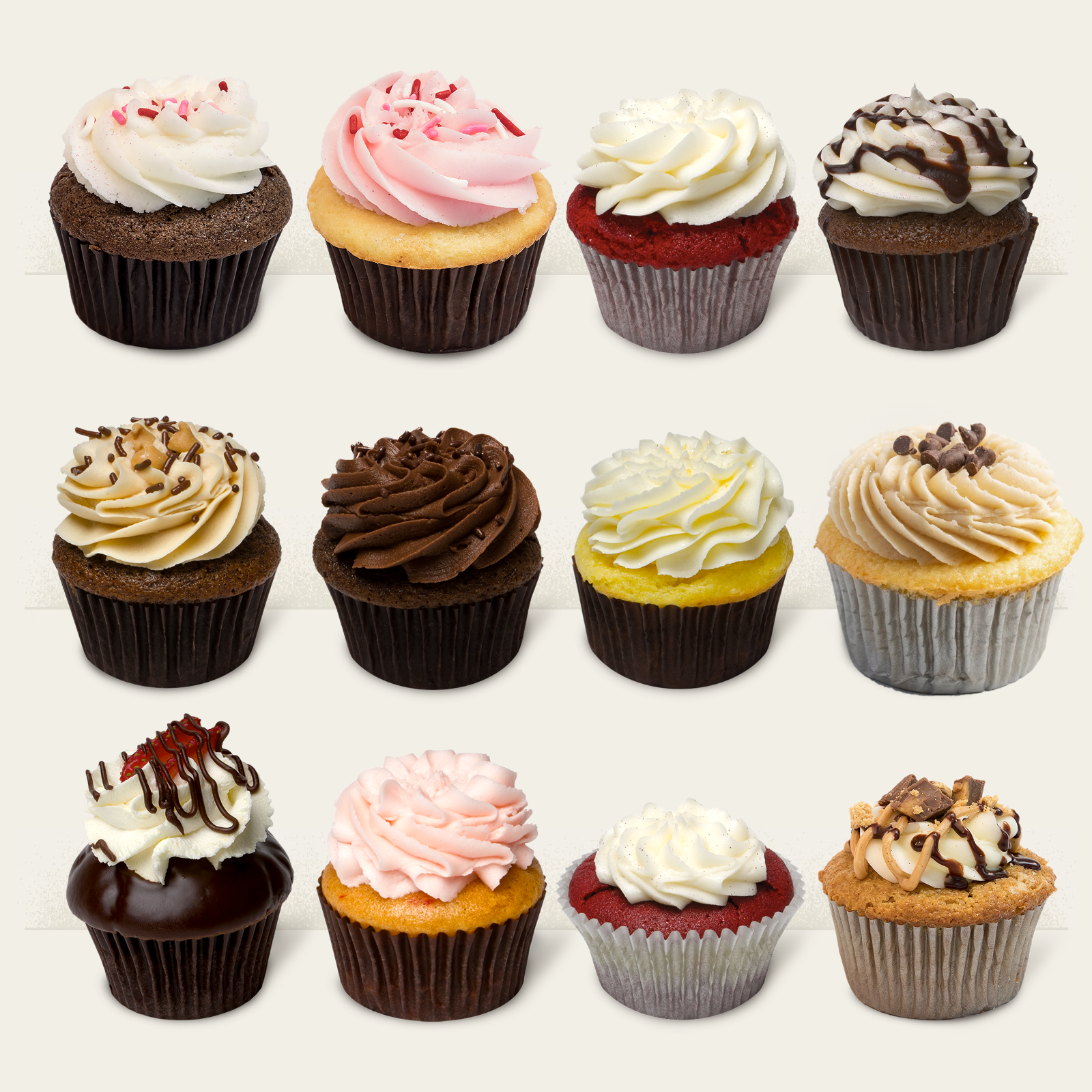 This package includes a mix of 12 different standard size cupcakes. Show those you love that you cherish them!